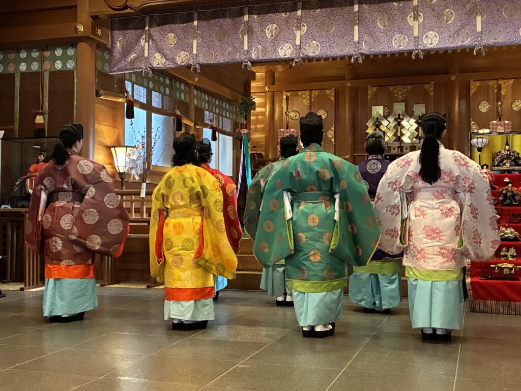 女性の神職がひな祭りの神事を