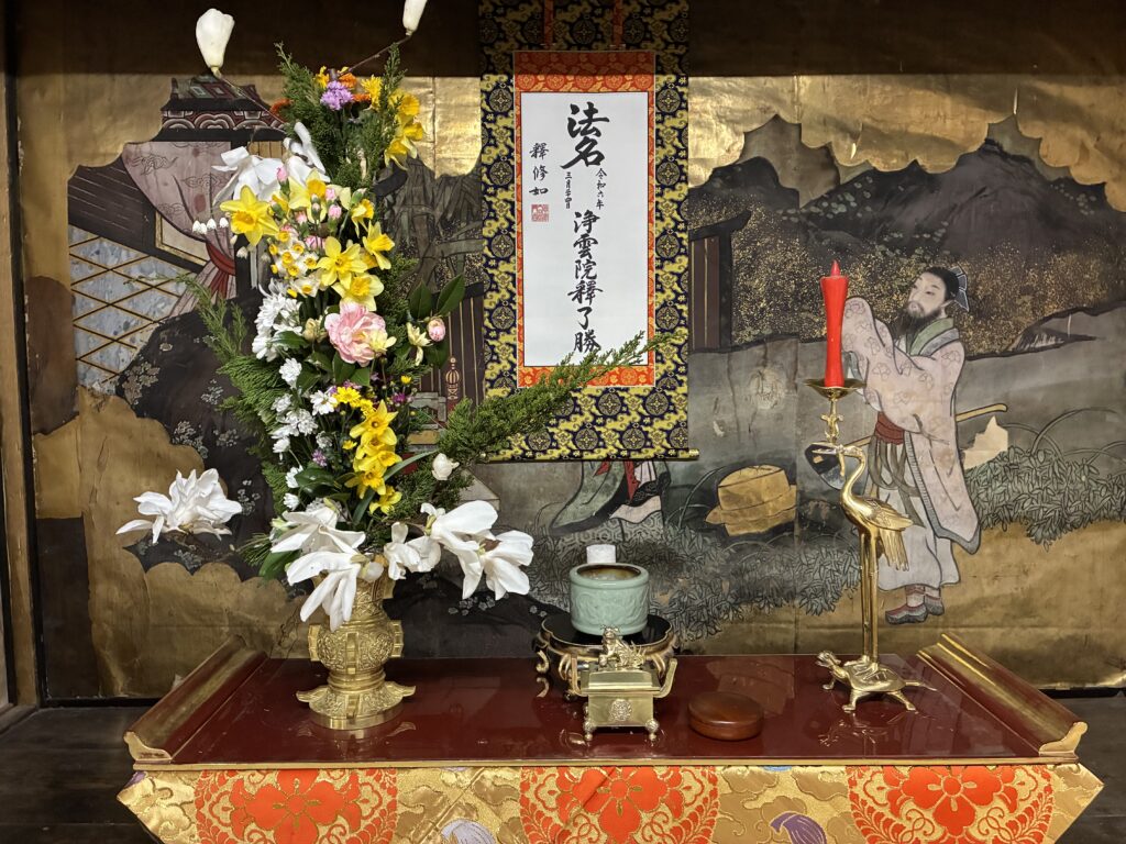 お花を生ける時いつもサポートして頂いている圓徳寺住職は今回も色々支えて頂きました、、。法要になると心に余裕がなく、常に何か忘れてしまいそうです。そういう時にフォローして頂くと本当に救われます。